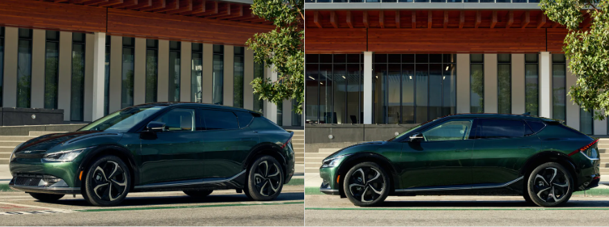 - EV6 : 쿠페형 SUV 의 유려한 실루엣, 패널형 헤드램프, 공기역학적 디자인
