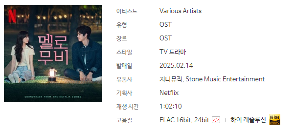 멜로무비의 OST는 박세준과 김규남이 음악감독으로 참여해 영화 같은 분위기를 연출했습니다.