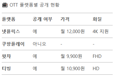 추가적으로 OTT 플랫폼별 가격에 대해 알려드리도록 하겠습니다.
